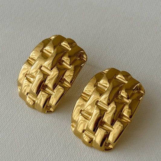old Textured Square Stud Earrings | Anti-Tarnish Classic Statement Studs for Women | Priya Jewellery