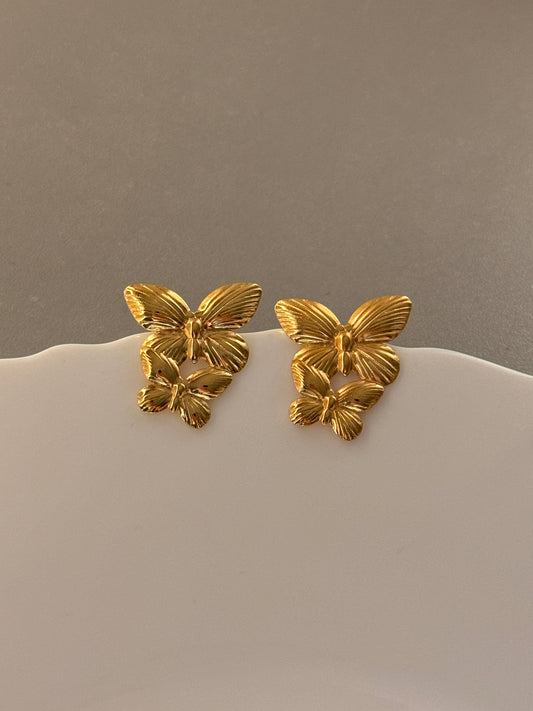 Golden Butterfly Layered Stud Earrings | Anti-Tarnish Statement Earrings for Women | Priya Jewellery