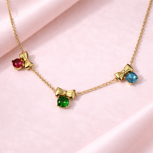 Minimal Gold Bow Jewellery Set with Colored Stones