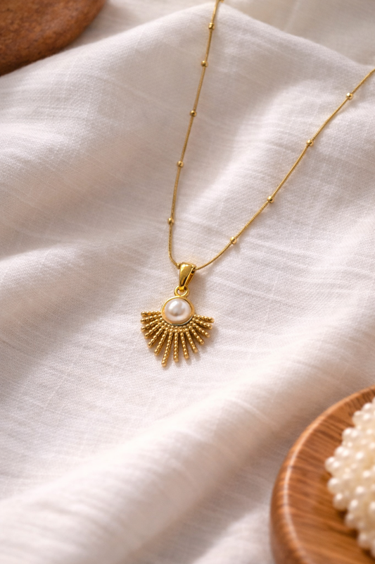 Gold Sunburst Pearl Pendant Necklace for Women