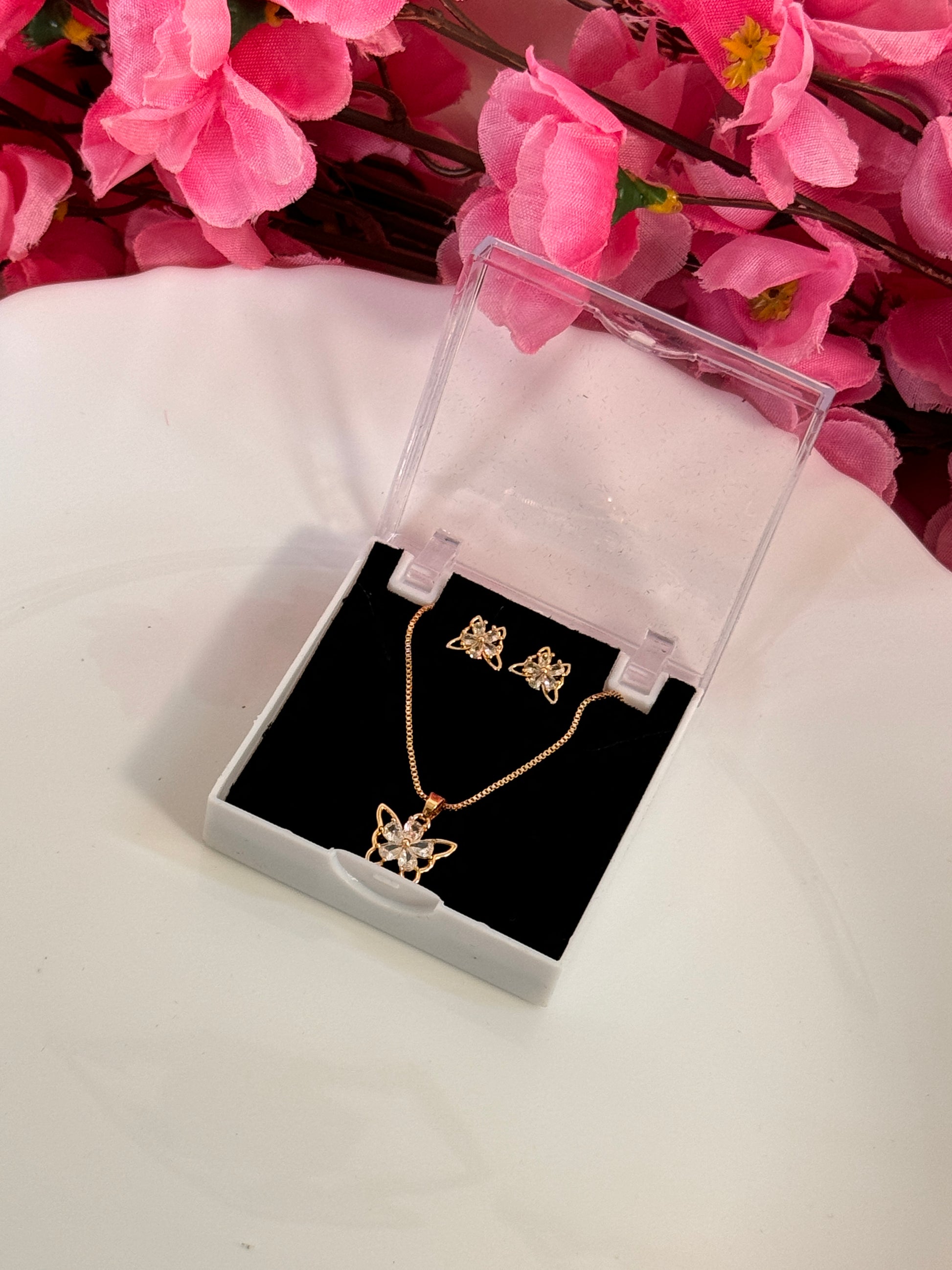 Gold Plated Butterfly Necklace & Earrings Set for Women | Elegant Anti-Tarnish Jewellery
