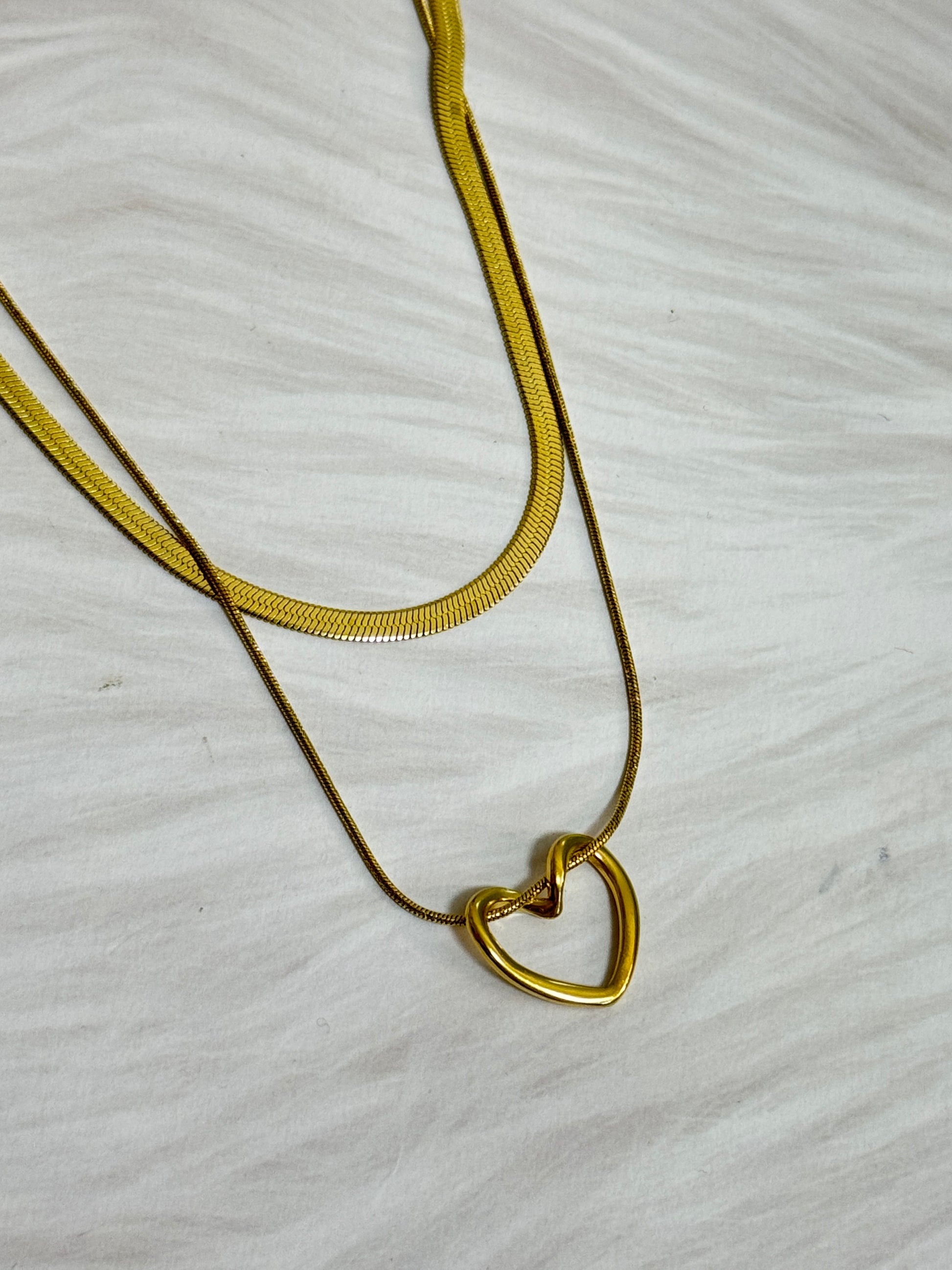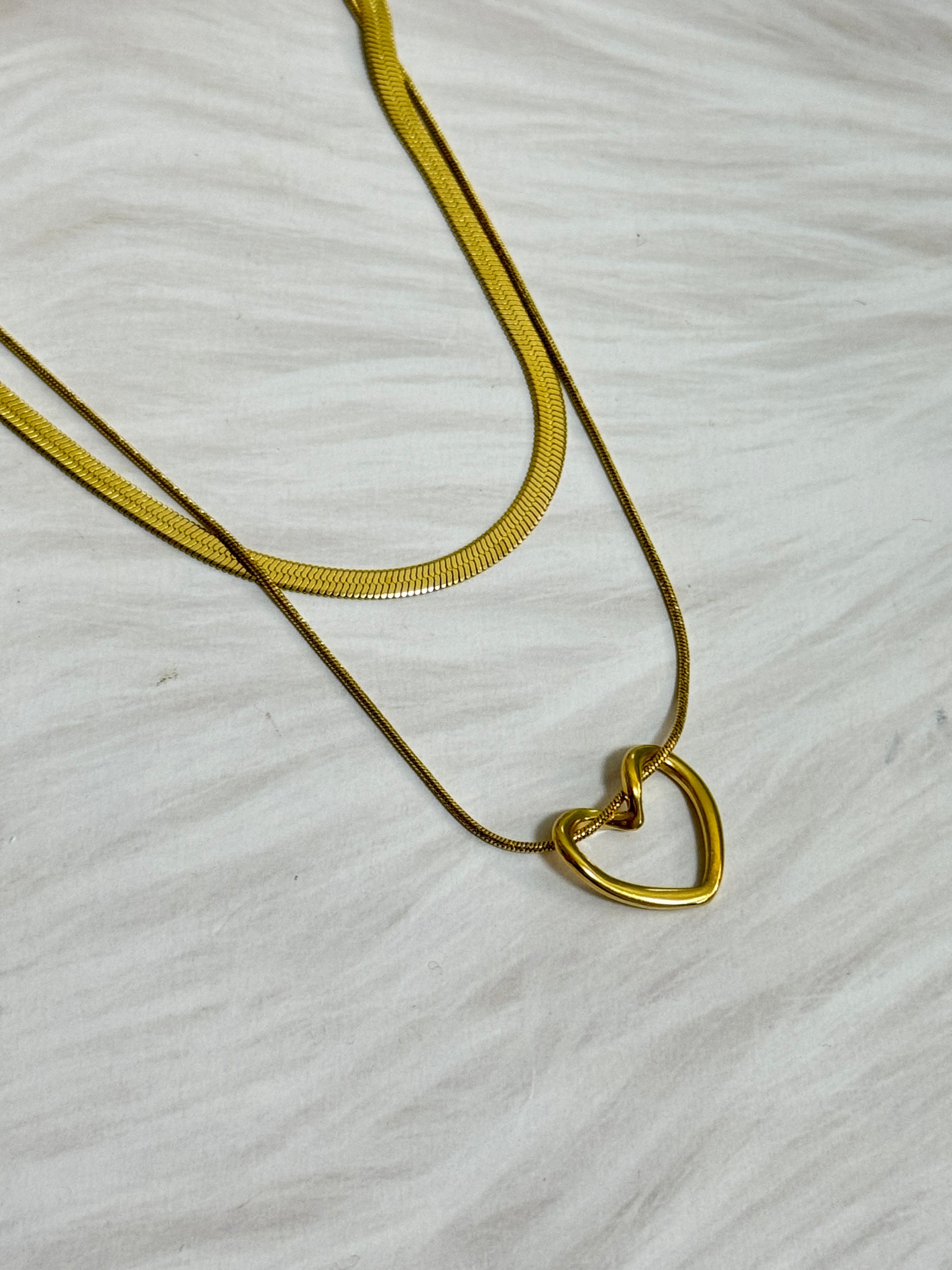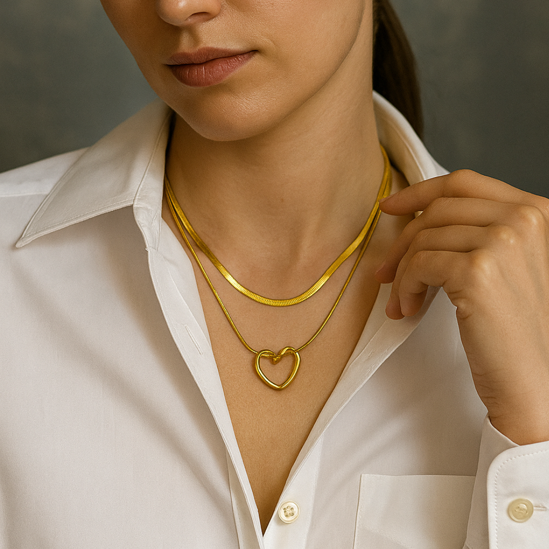 Double Layer Gold-Plated Heart Pendant Necklace for Women & Girls