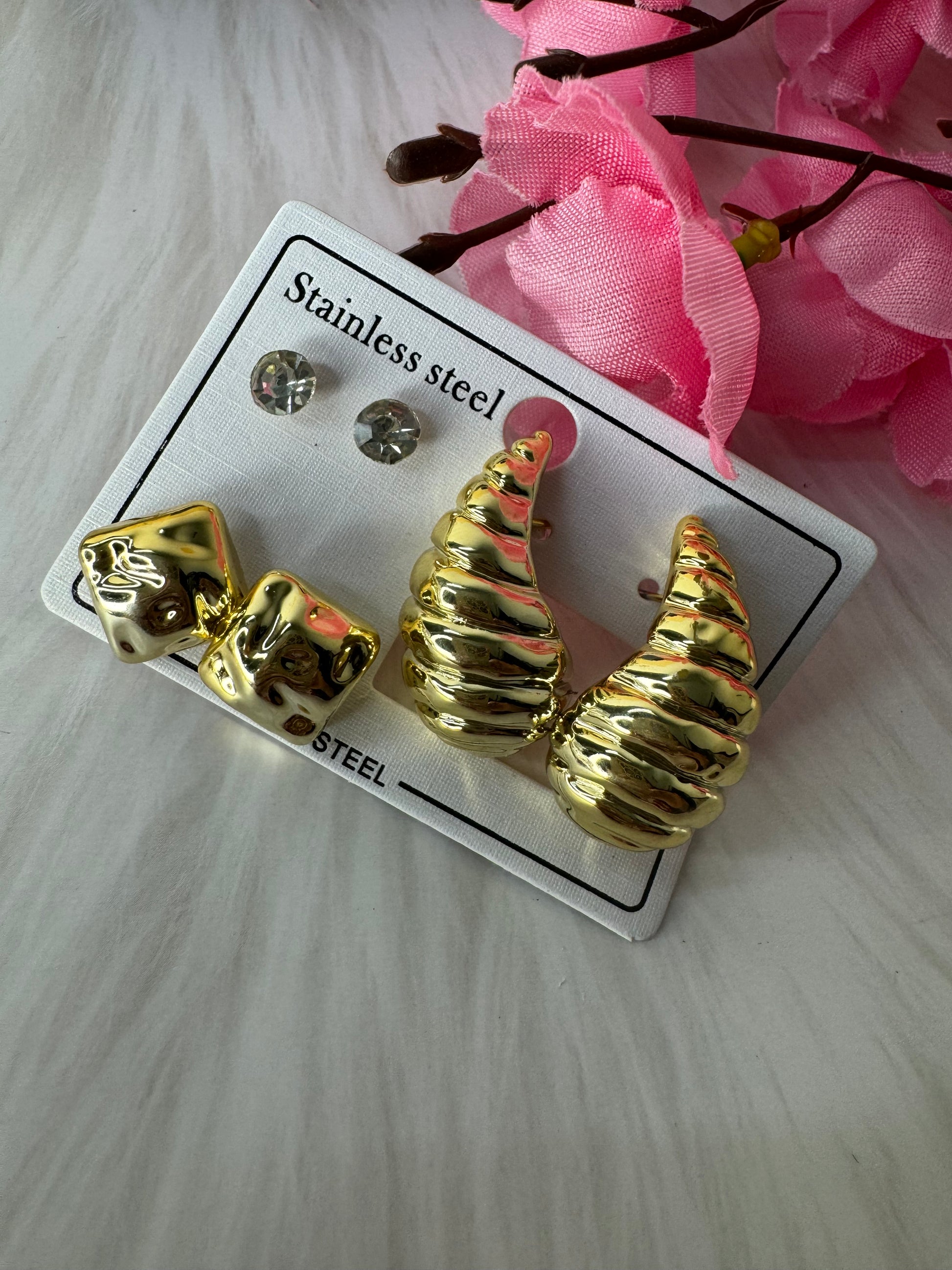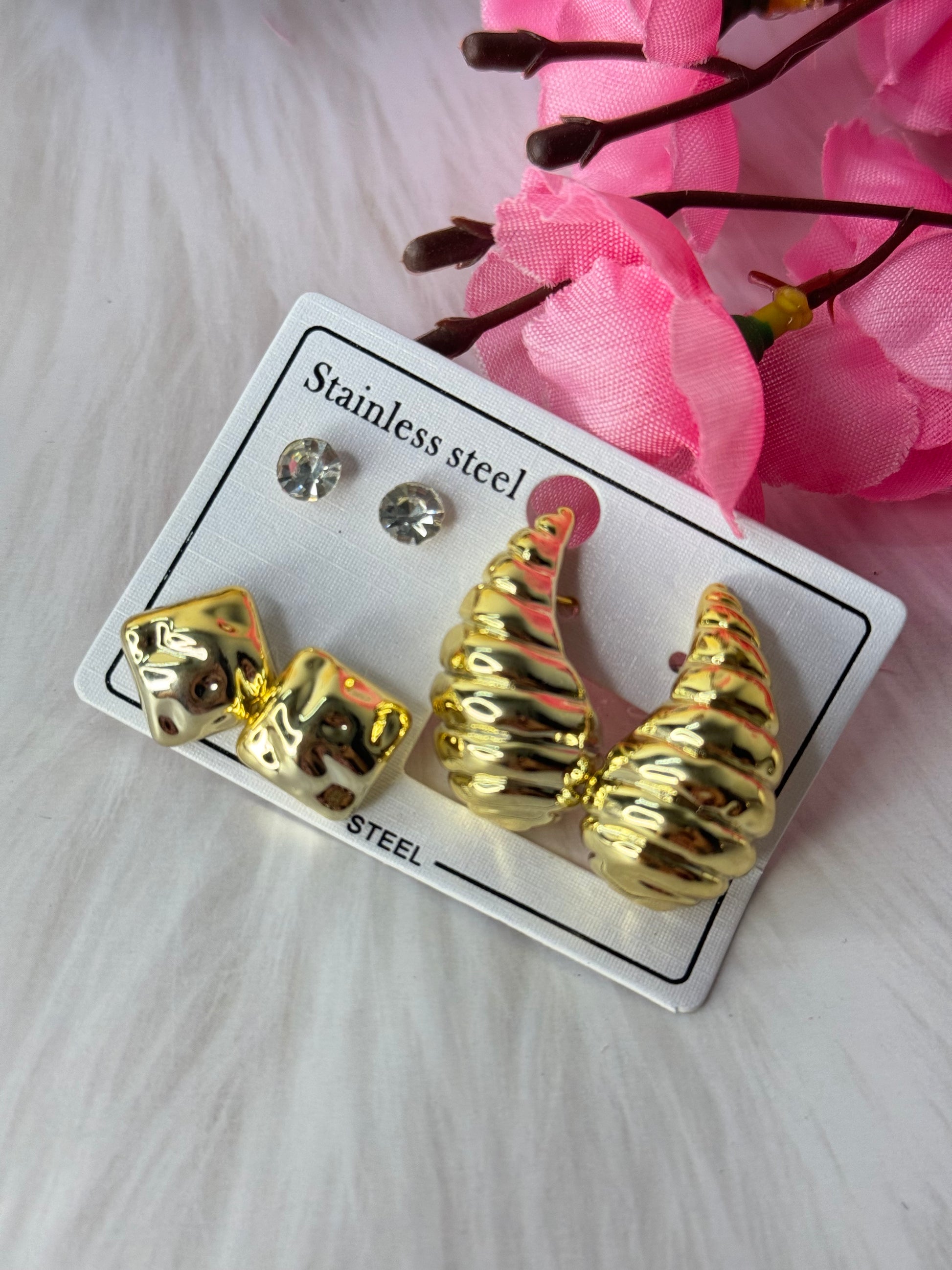 This set of 3 drop earrings boasts a stunning golden finish, adding a touch of elegance to any outfit. Made with high-quality materials, these earrings offer a durable and sophisticated accessory option. Elevate your style with these versatile and stylish drop earrings.