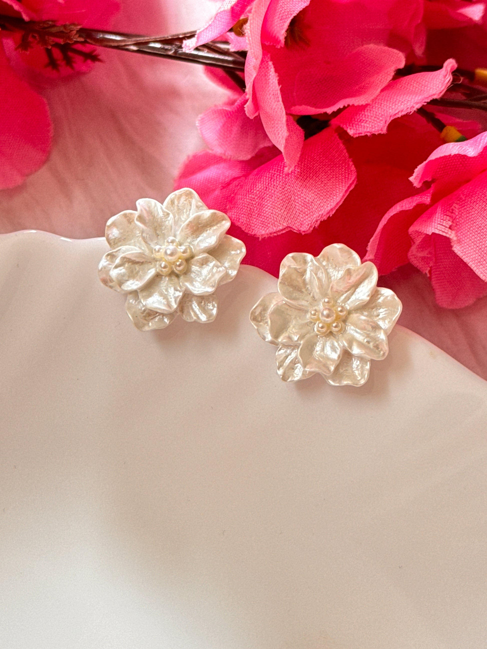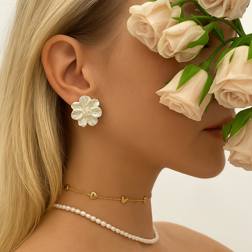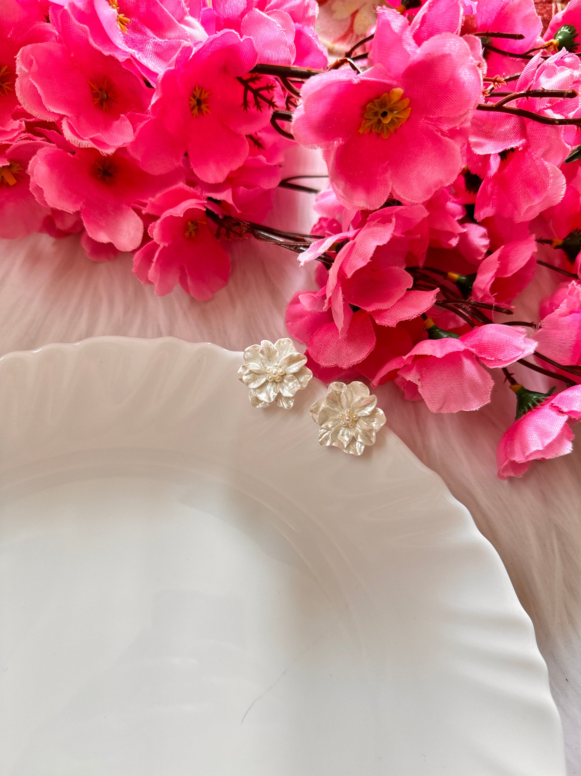 White Floral Statement Earrings – Chic Pearl Accent Studs