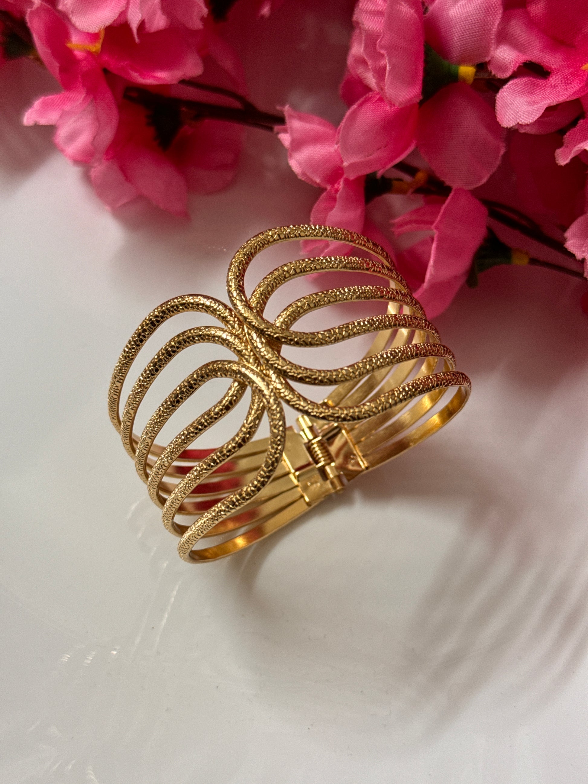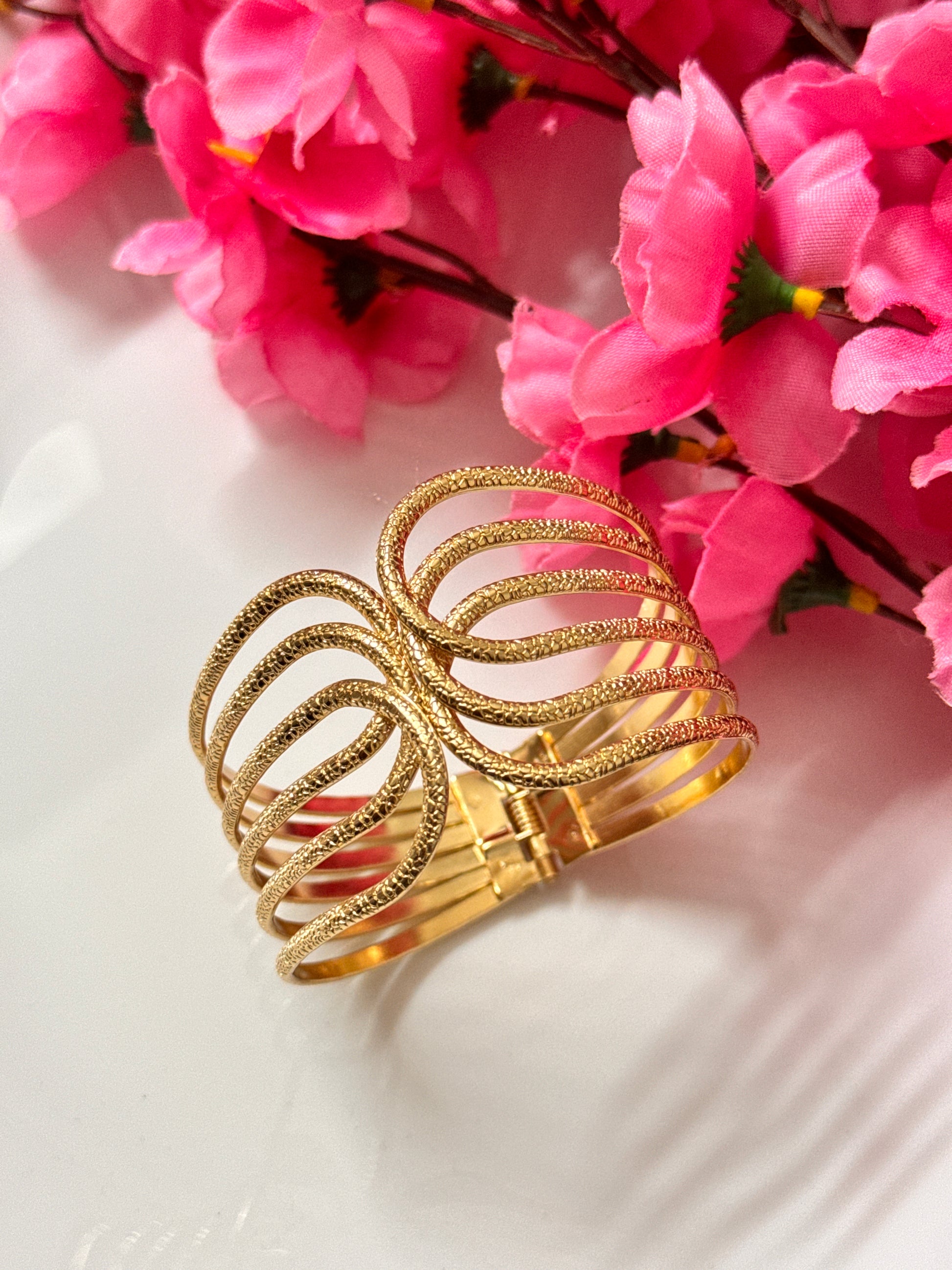 Protect your jewelry with our Anti Tarnish Gold Quirky Hand Cuff. Made with high quality gold plating, this hand cuff prevents tarnishing and keeps your jewelry looking like new. No more cleaning, just wear and go for a sparkling look.Gold Quirky Hand Cuff