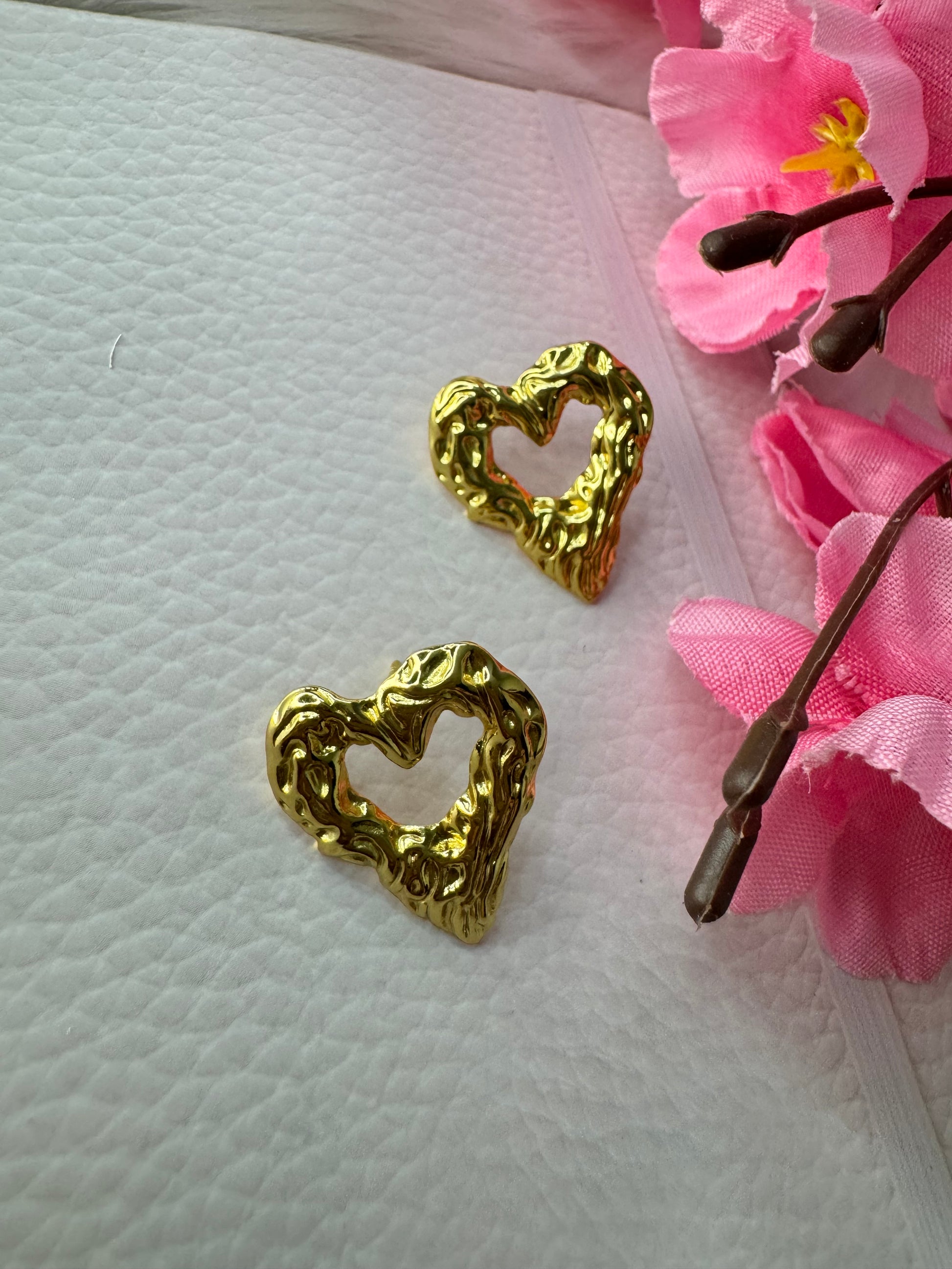 These Golden Hammered Heart Earrings are specially treated with anti-tarnish properties, ensuring long-lasting shine and beauty. No need to worry about the effects of tarnishing over time, these earrings will stay as stunning as the day you bought them. Perfect for adding a touch of elegance to any outfit.