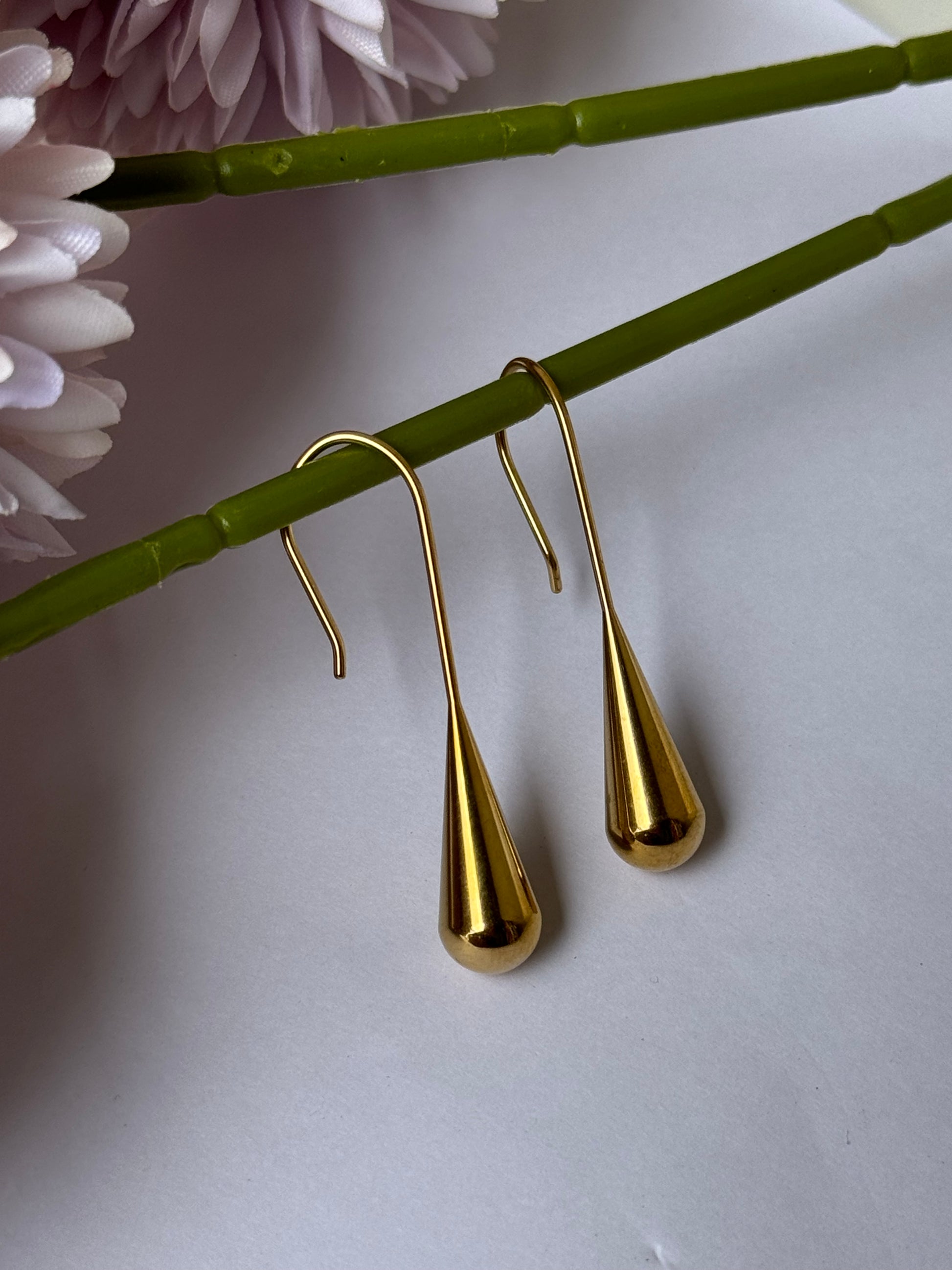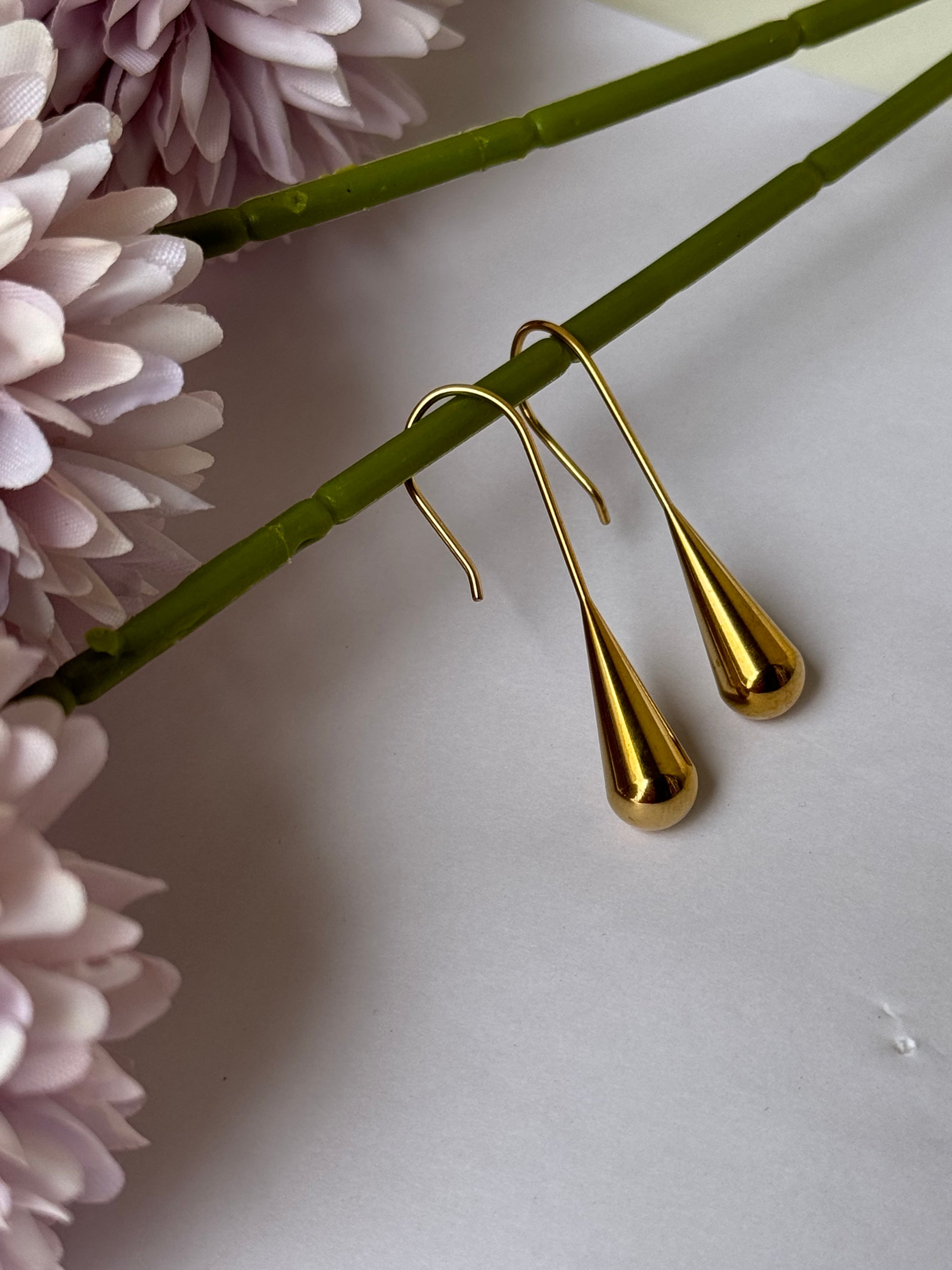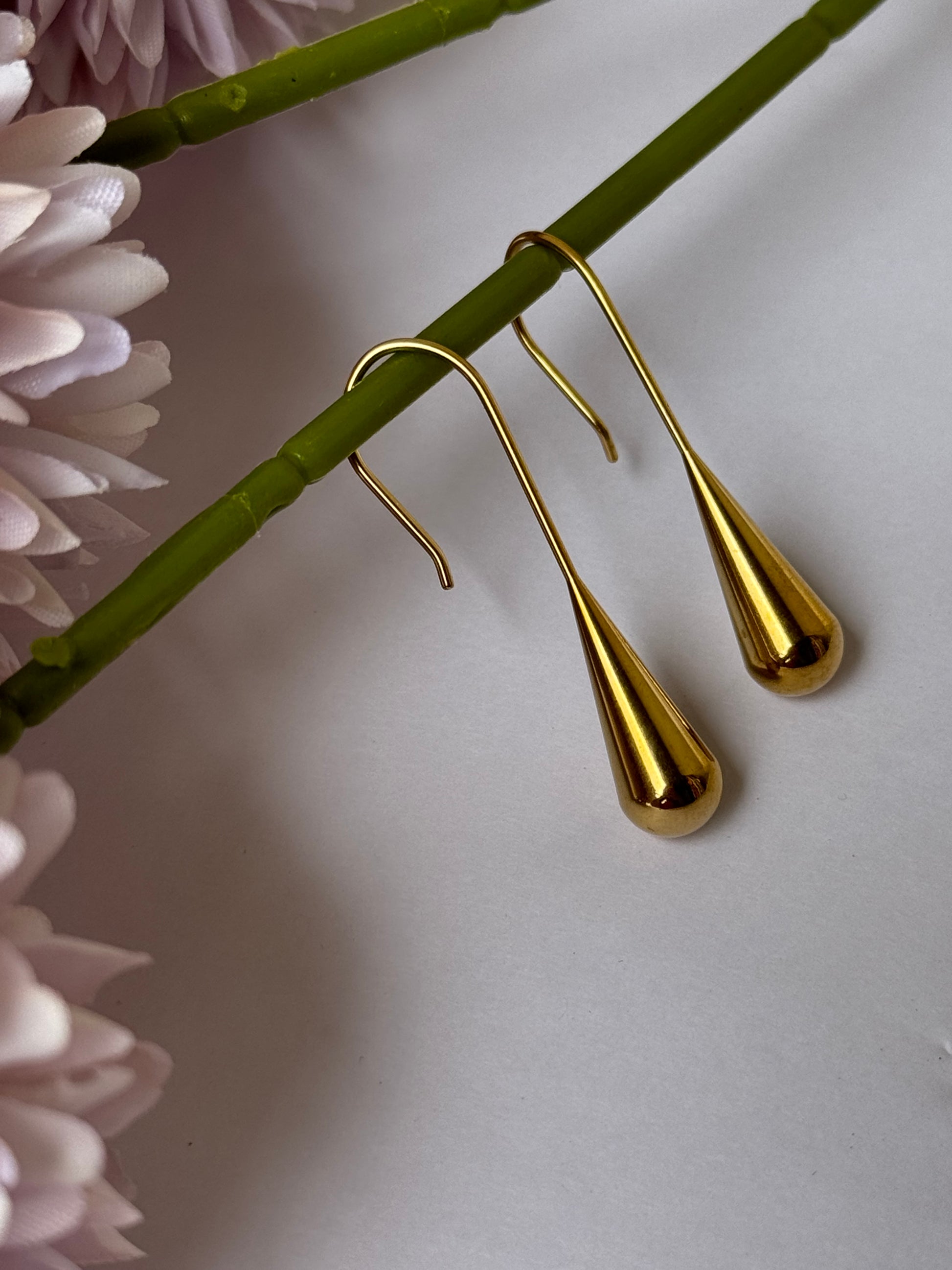 These elegant Golden Hanging Droplets earrings feature a stunning, golden design that will add a touch of sophistication to any outfit. The droplet shape adds subtle movement, creating a dynamic and eye-catching effect. Crafted with precision and style, these earrings are sure to be a timeless addition to any jewelry collection.