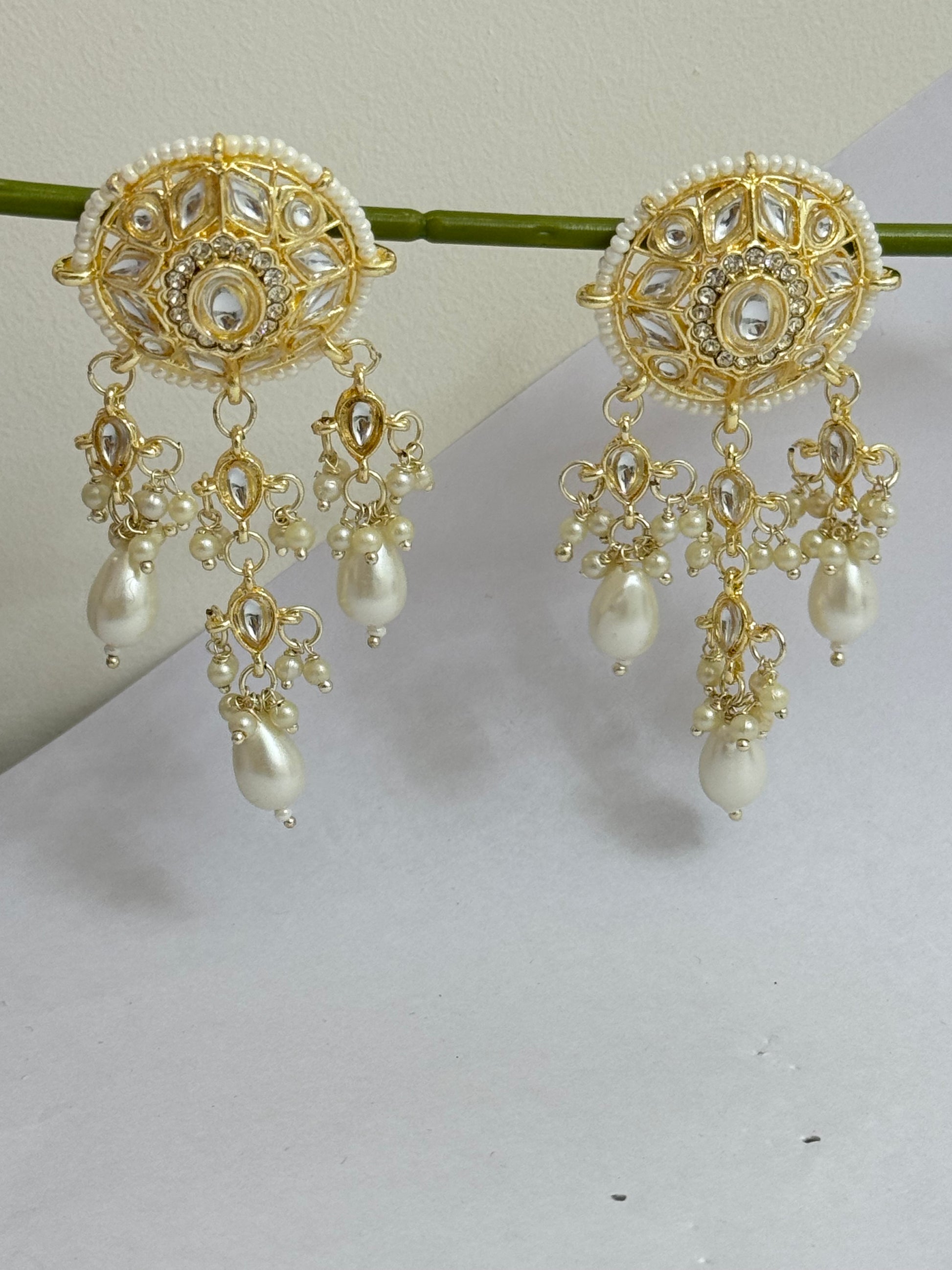 The Golden Pearl Jhumka is the perfect addition to any festive outfit. Made with high-quality pearls, this jhumka adds a touch of elegance and sophistication. With its intricate design and beautiful pearls, this jhumka is sure to make a statement at any occasion. Upgrade your style with the Golden Pearl Jumka.