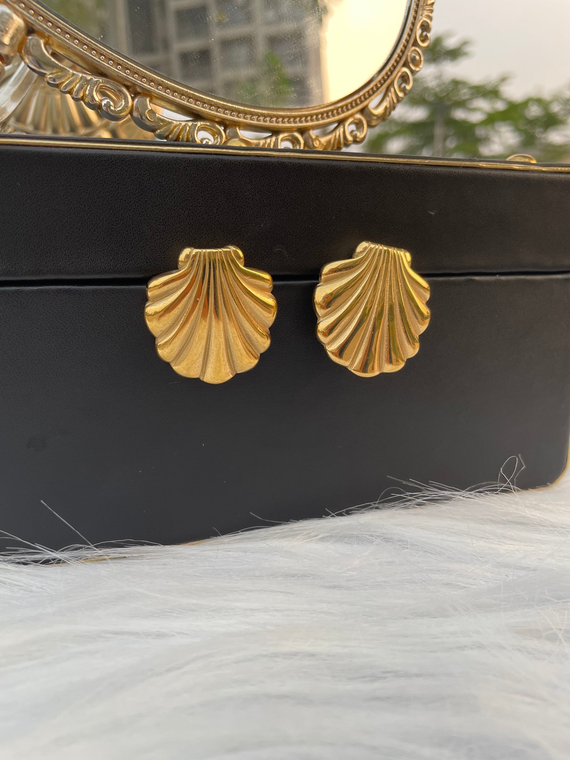 Introduce a touch of the ocean to your wardrobe with these beautiful Golden Shell Studs. Crafted from high-quality materials, these studs feature a delicate and intricate design that will add an elegant and unique touch to any outfit. With their timeless style and durable construction, these studs are sure to become a staple in your jewelry collection.