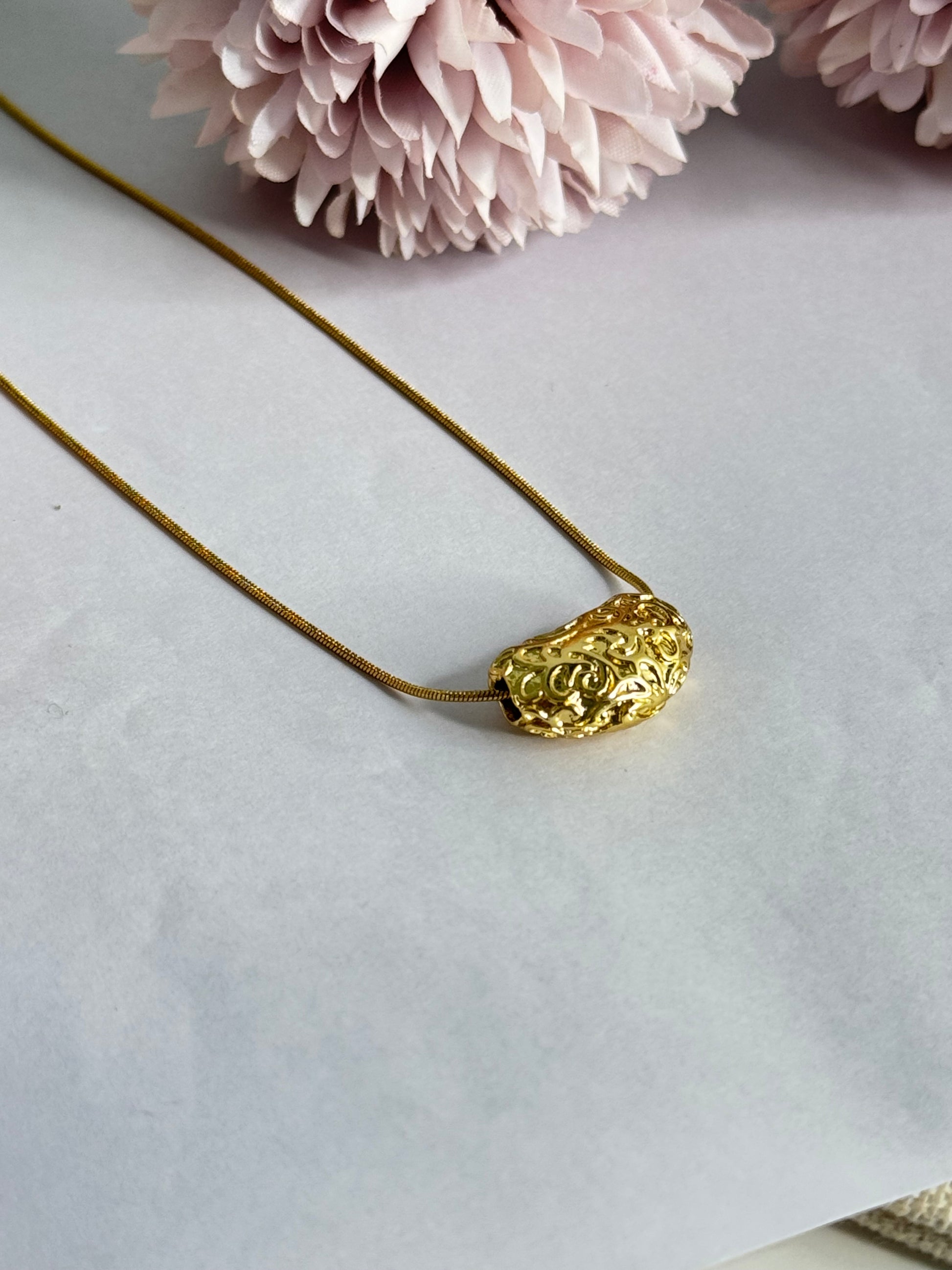 Gold Filigree Nugget Pendant Necklace – Elegant Designer Jewelry for Women”
