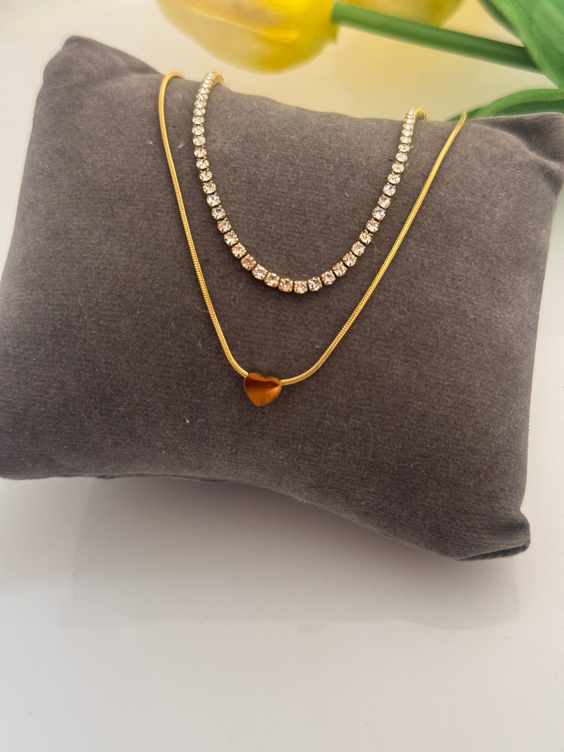 Celebrate love in style with this enchanting layered gold heart pendant paired with a sparkling CZ tennis necklace. Perfect for Valentine's Day or any occasion that calls for romance, this dual-piece set combines delicate elegance with modern glamour. The lustrous gold heart adds a tender touch, while the brilliant cubic zirconia tennis chain brings dazzling sophistication. Layer them together for maximum impact or wear separately to suit your mood. Crafted for the woman who adores jewelry that tells a love story, this Valentine special is your ticket to turning heads and stealing hearts.