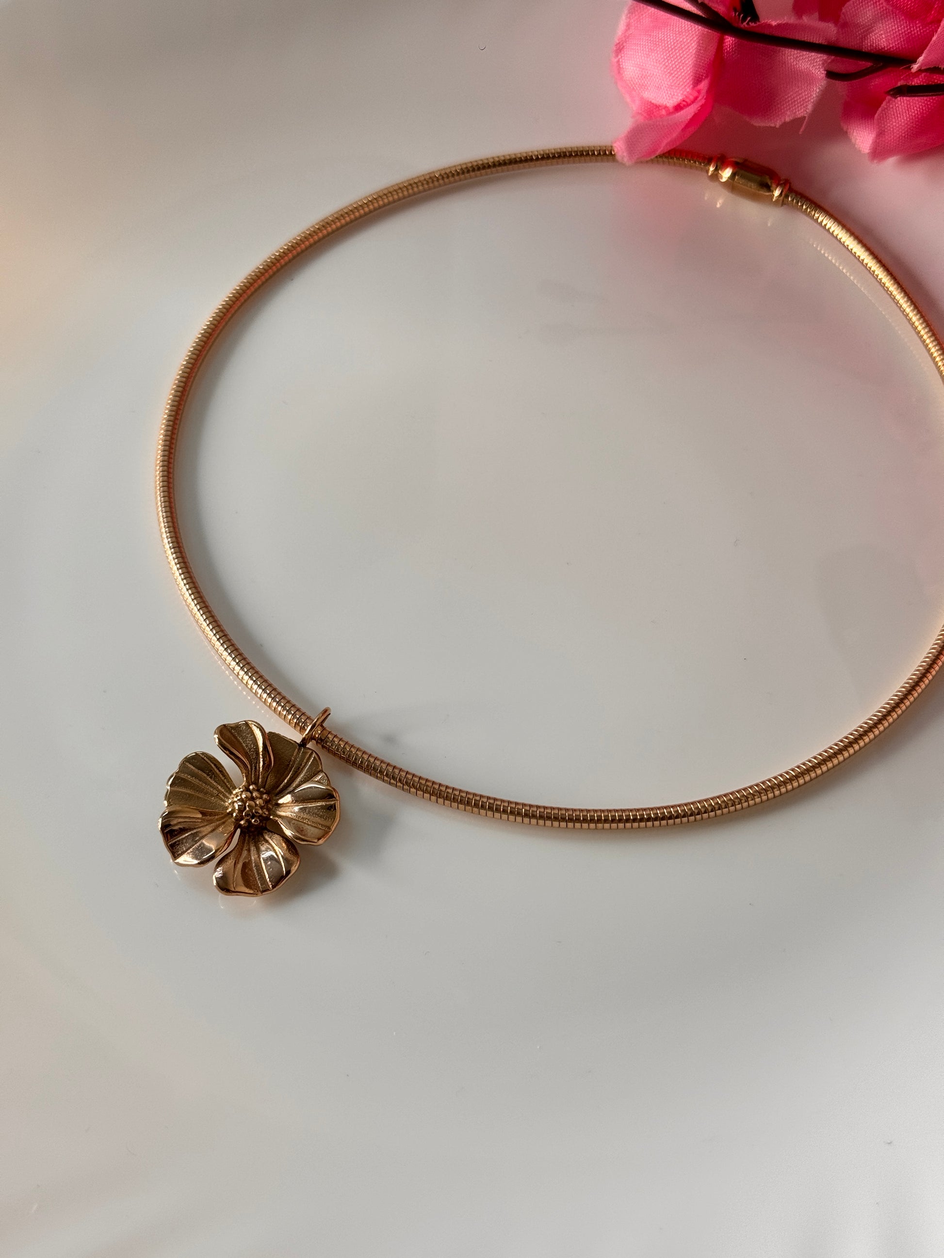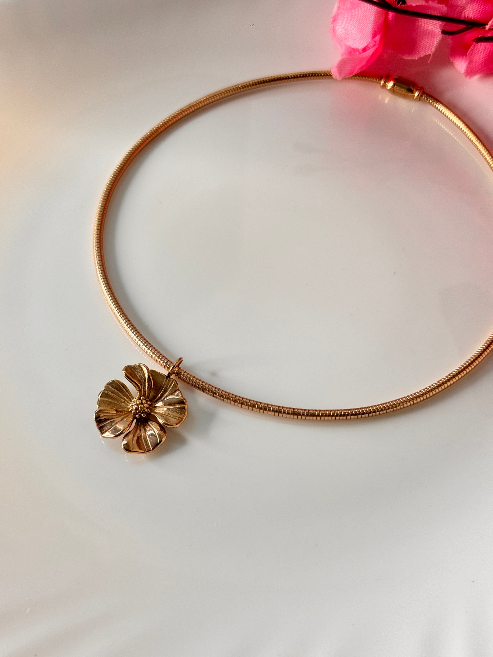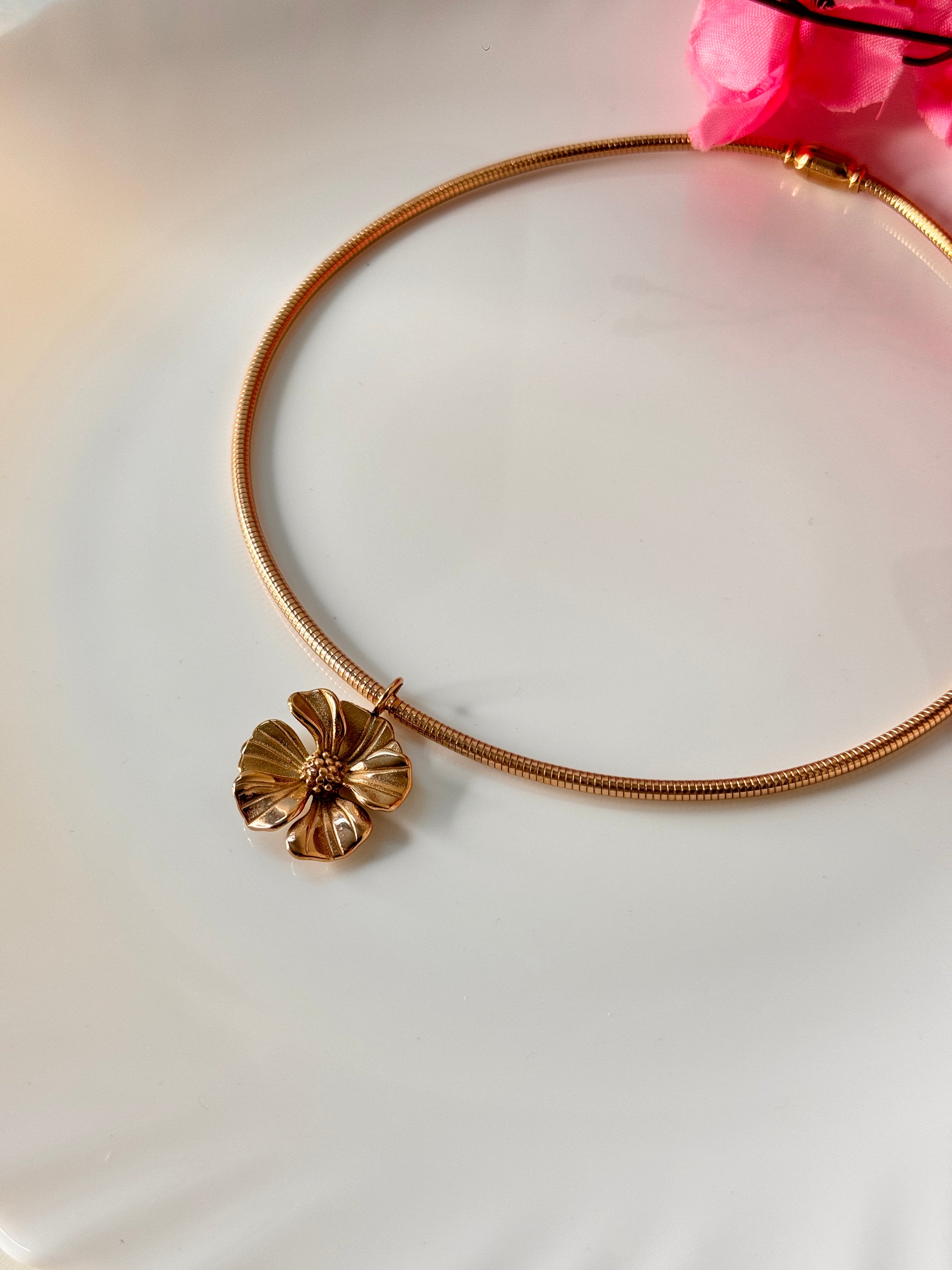 Magnetic RoseGold Flower Choker Necklace – Elegant Anti-Tarnish Minimalist Pendant Jewellery for Women