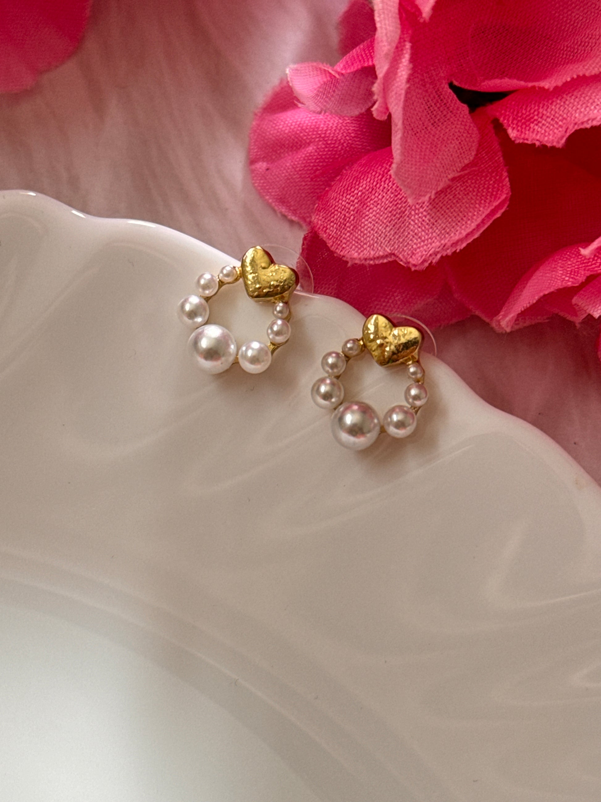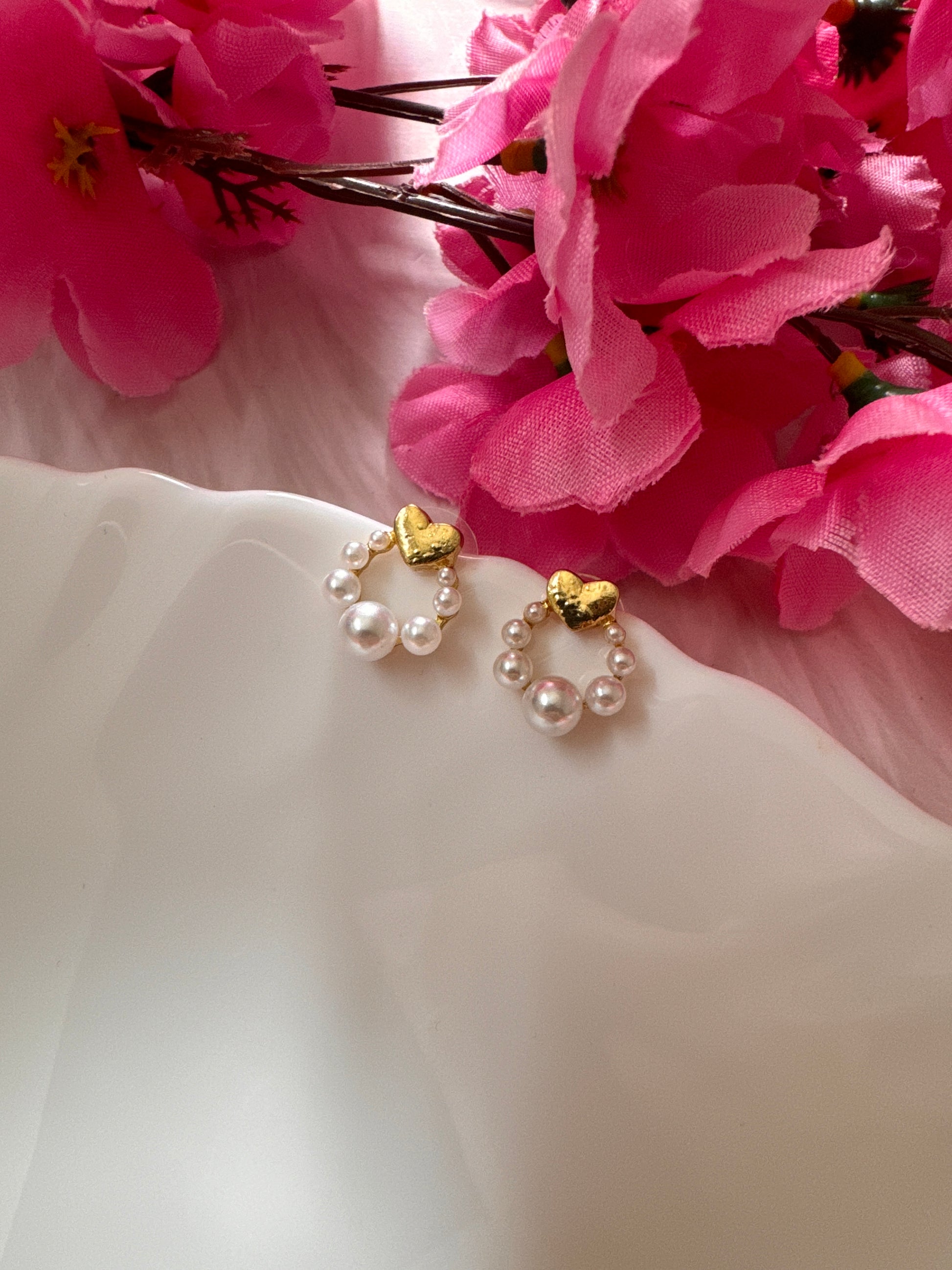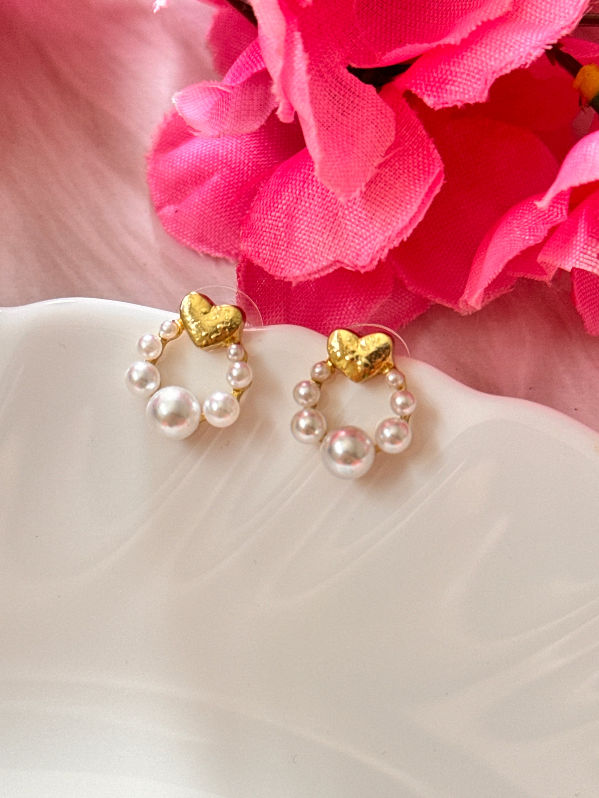 Dainty Pearl Hoop Earrings with Golden Heart – Trendy Fashion Jewelry