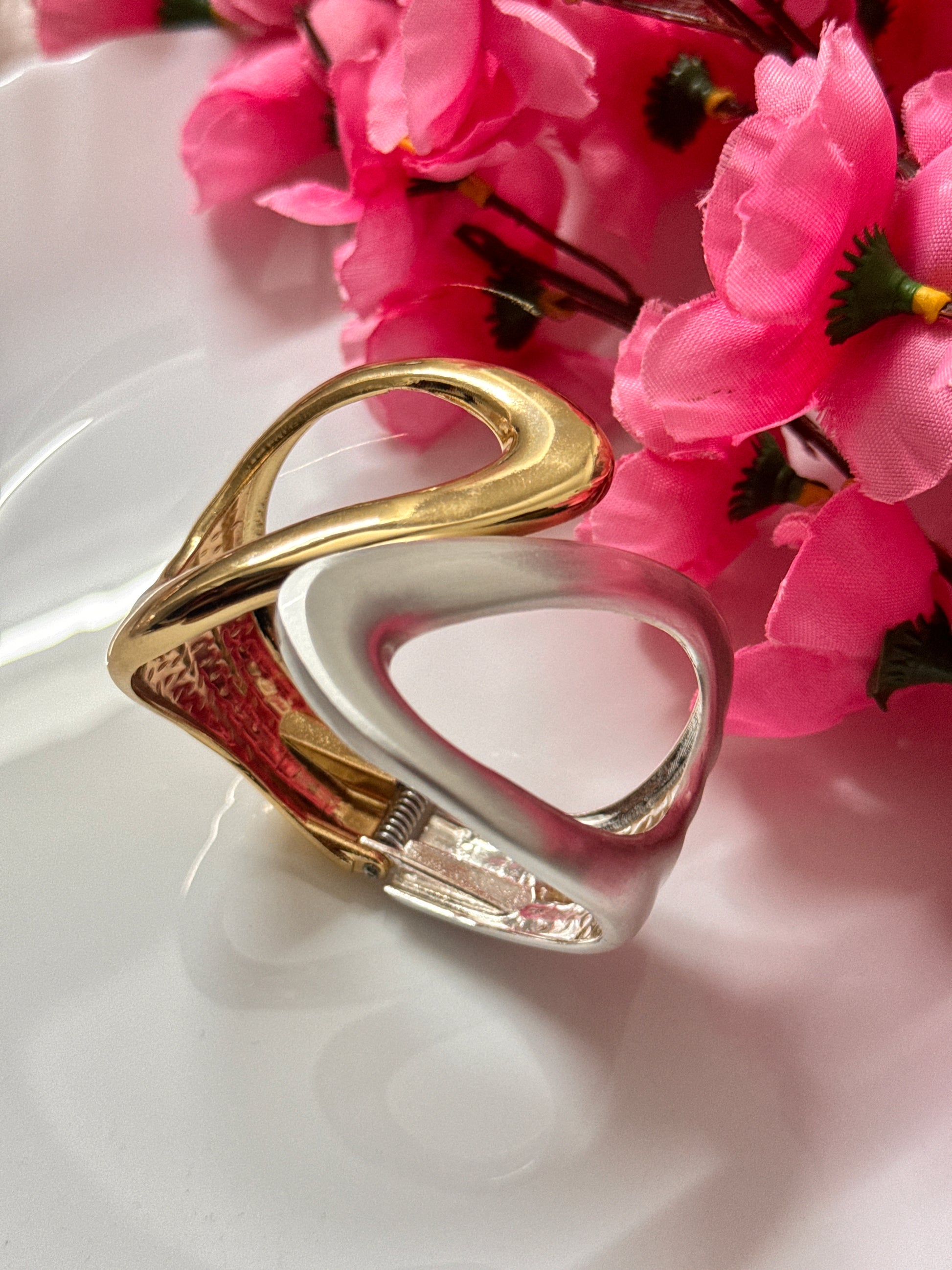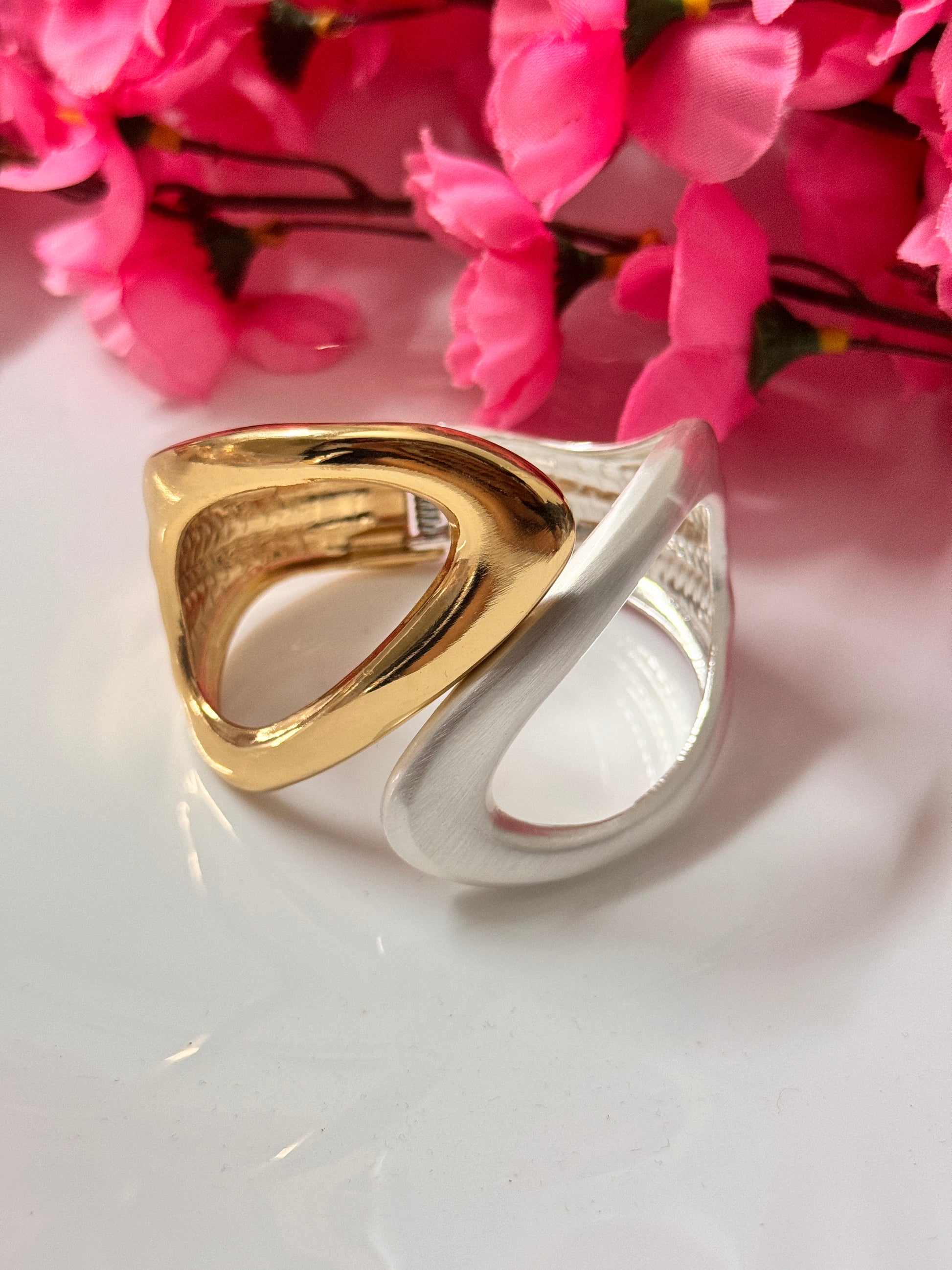 This Mixed Metal open cuff Bracelet is designed to resist tarnishing, ensuring long-lasting shine for your everyday wear. With its unique mix of metals, this bracelet is sure to add a touch of elegance to any outfit. Invest in quality and sophistication with this anti tarnish accessory.