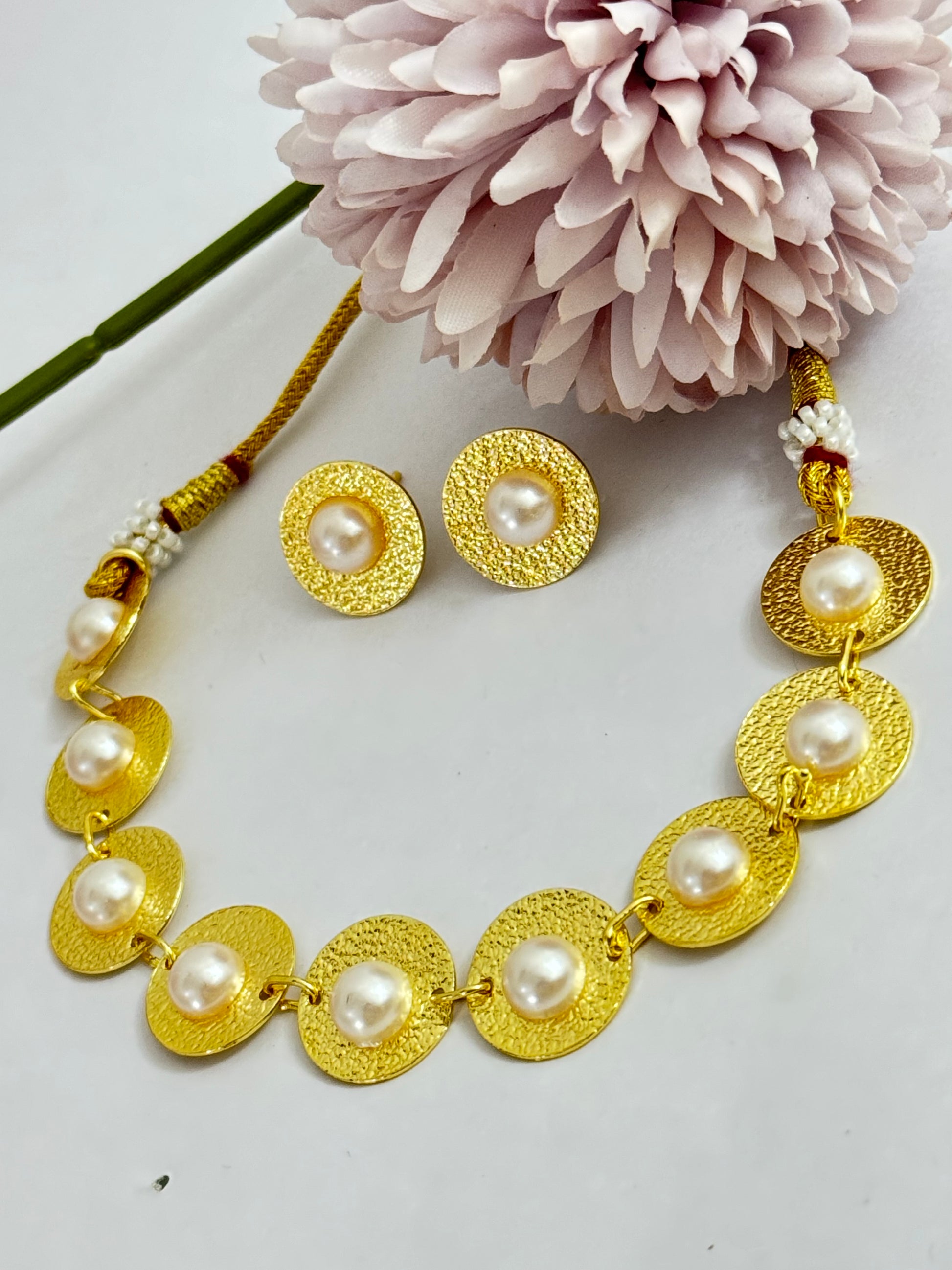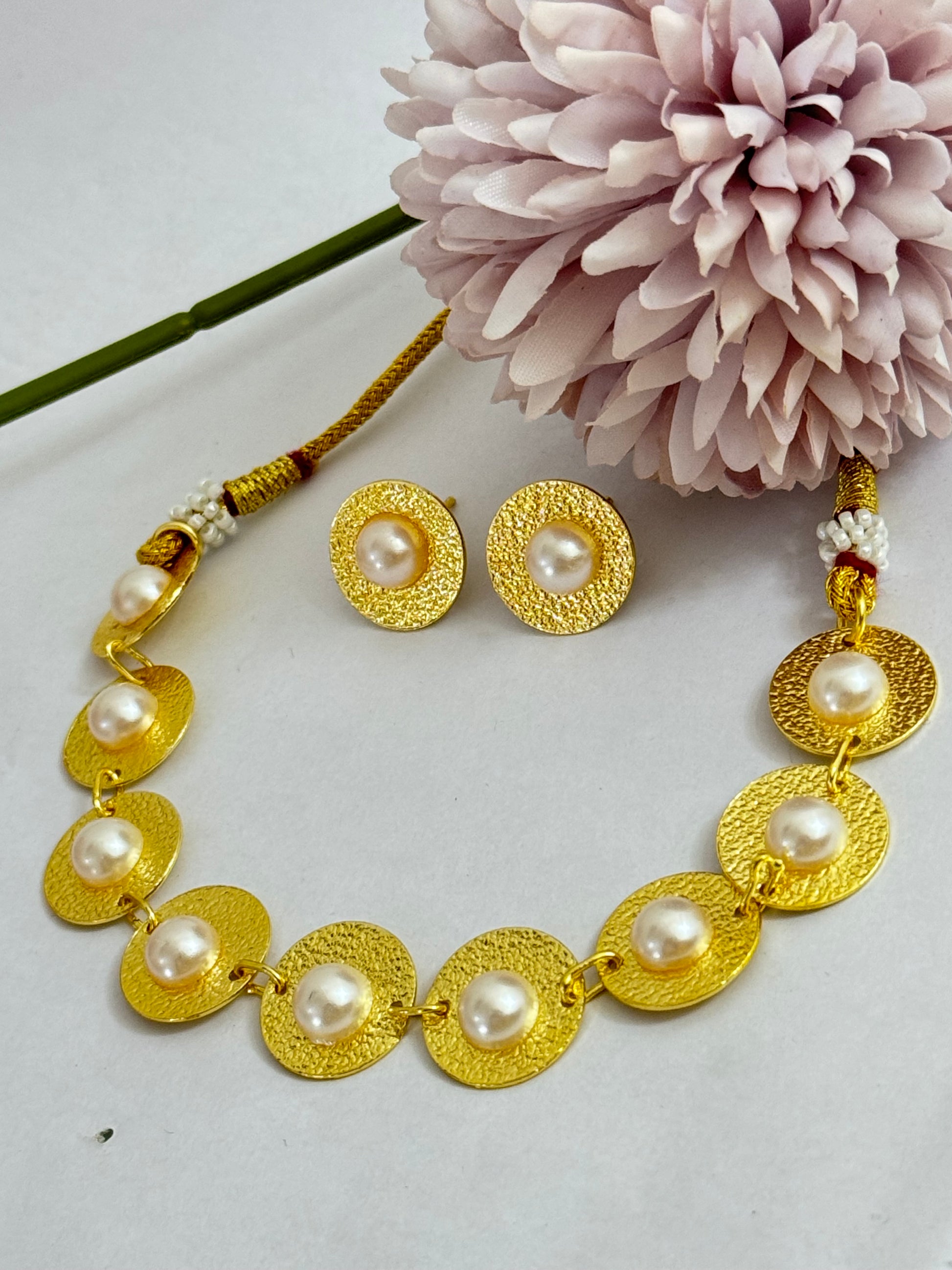 This Coin Pearl Viral Necklace is expertly crafted with precision and care, showcasing its elegant and unique coin-shaped pearls. Each necklace is a stunning piece that adds a touch of sophistication to any outfit. Made with high-quality materials, it's a timeless accessory that will elevate your style with its delicate beauty. Buy most affordable imitation and stylish jewellery online.