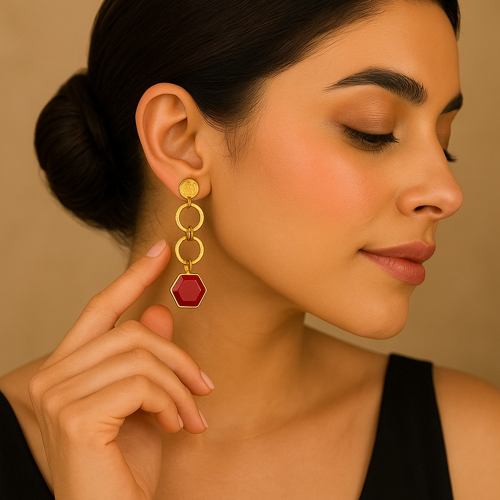 Upgrade your earring collection with our Red Chain Loop Earrings. Made of high-quality materials, these earrings add a touch of chic to any outfit. The unique chain loop design offers a modern twist that is sure to make a statement. Elevate your style with these stylish and eye-catching earrings.