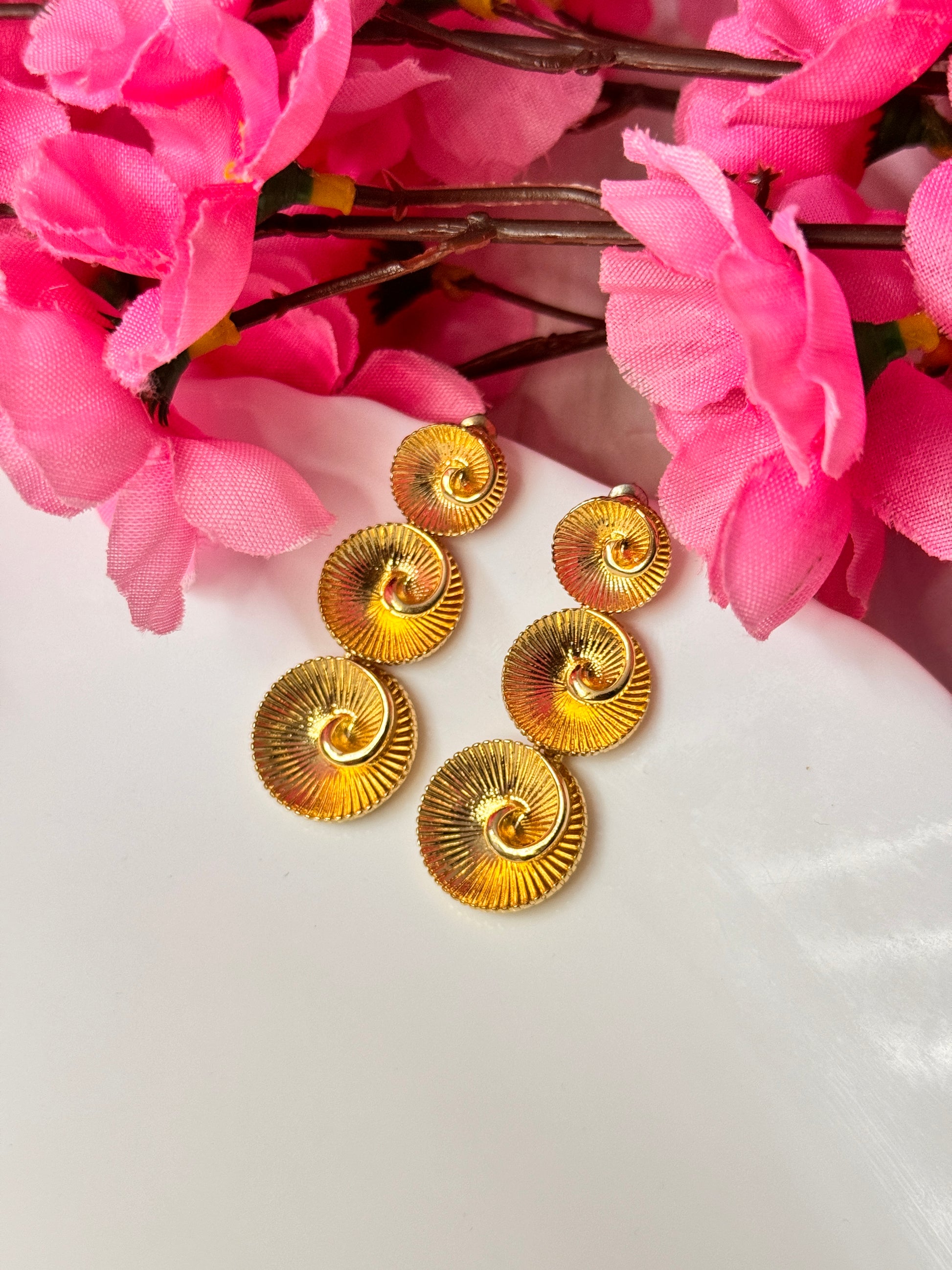Elevate your style with our Spiral Statement Hangings. These unique spiral-shaped earrings make a statement with their bold design and polished finish. Crafted with precision and quality materials, they are a must-have for any jewelry collection. Add a touch of modern sophistication to any outfit with our Spiral Statement Hangings.