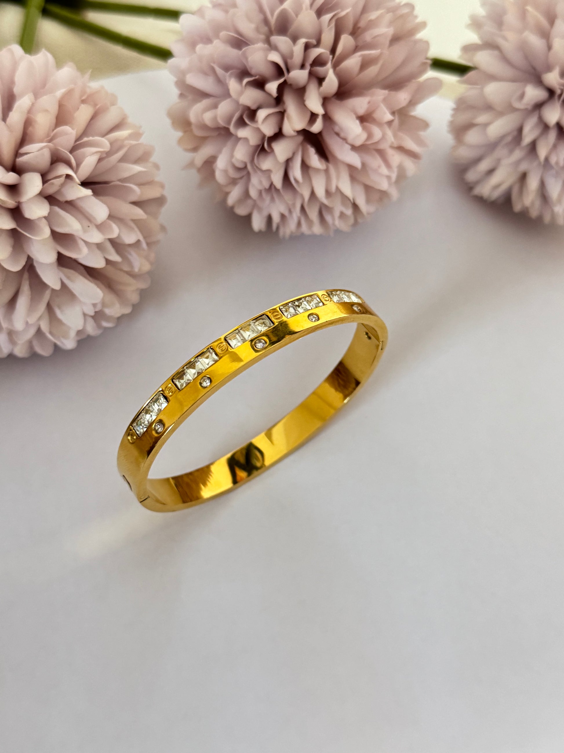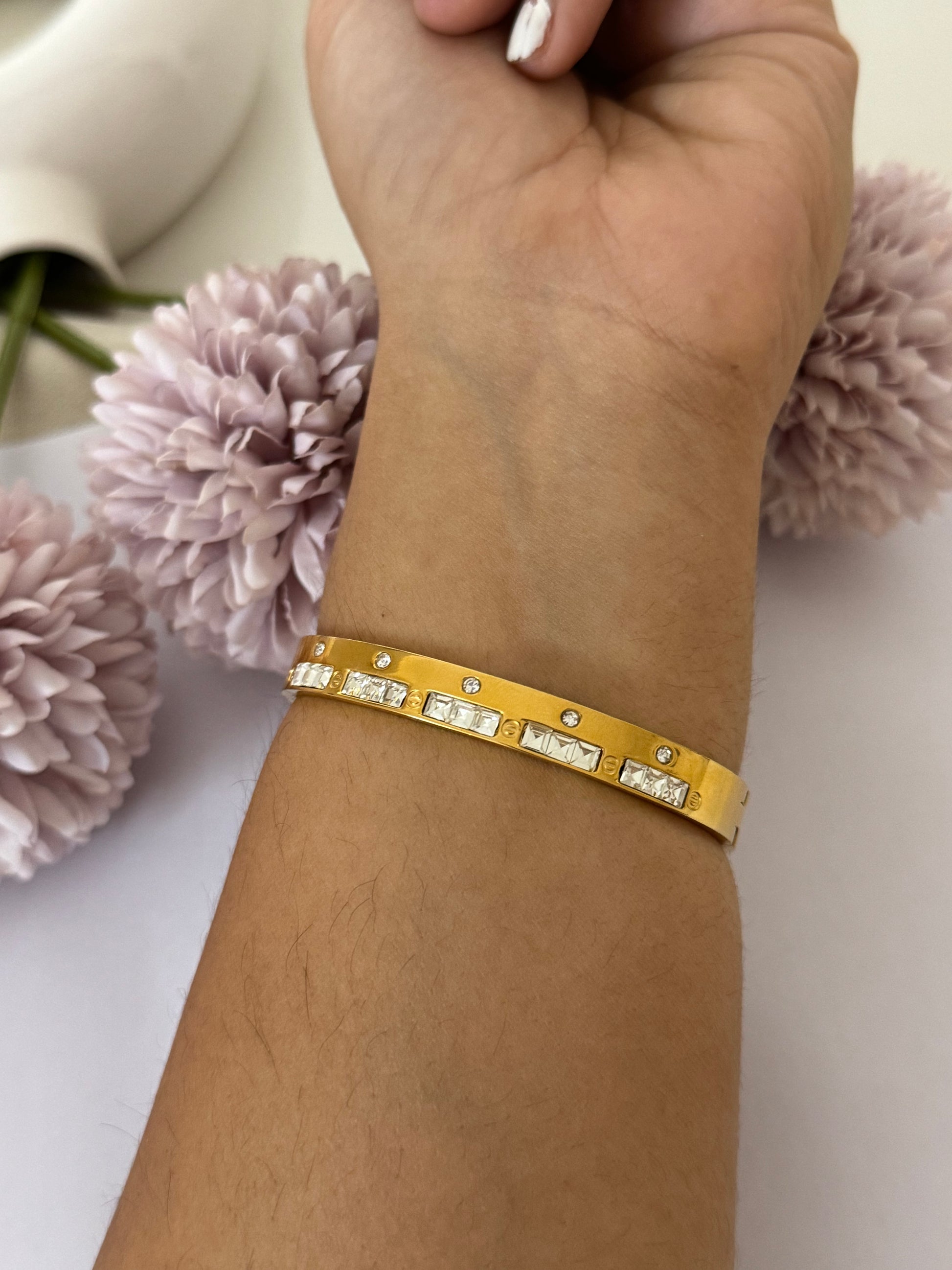 This Stone Bracelet is expertly designed with a gold plated anti-tarnish coating, ensuring long-lasting shine and durability. Perfect for everyday wear, this bracelet adds a touch of elegance to any outfit. Keep your accessories looking like new with this must-have anti-tarnish feature.