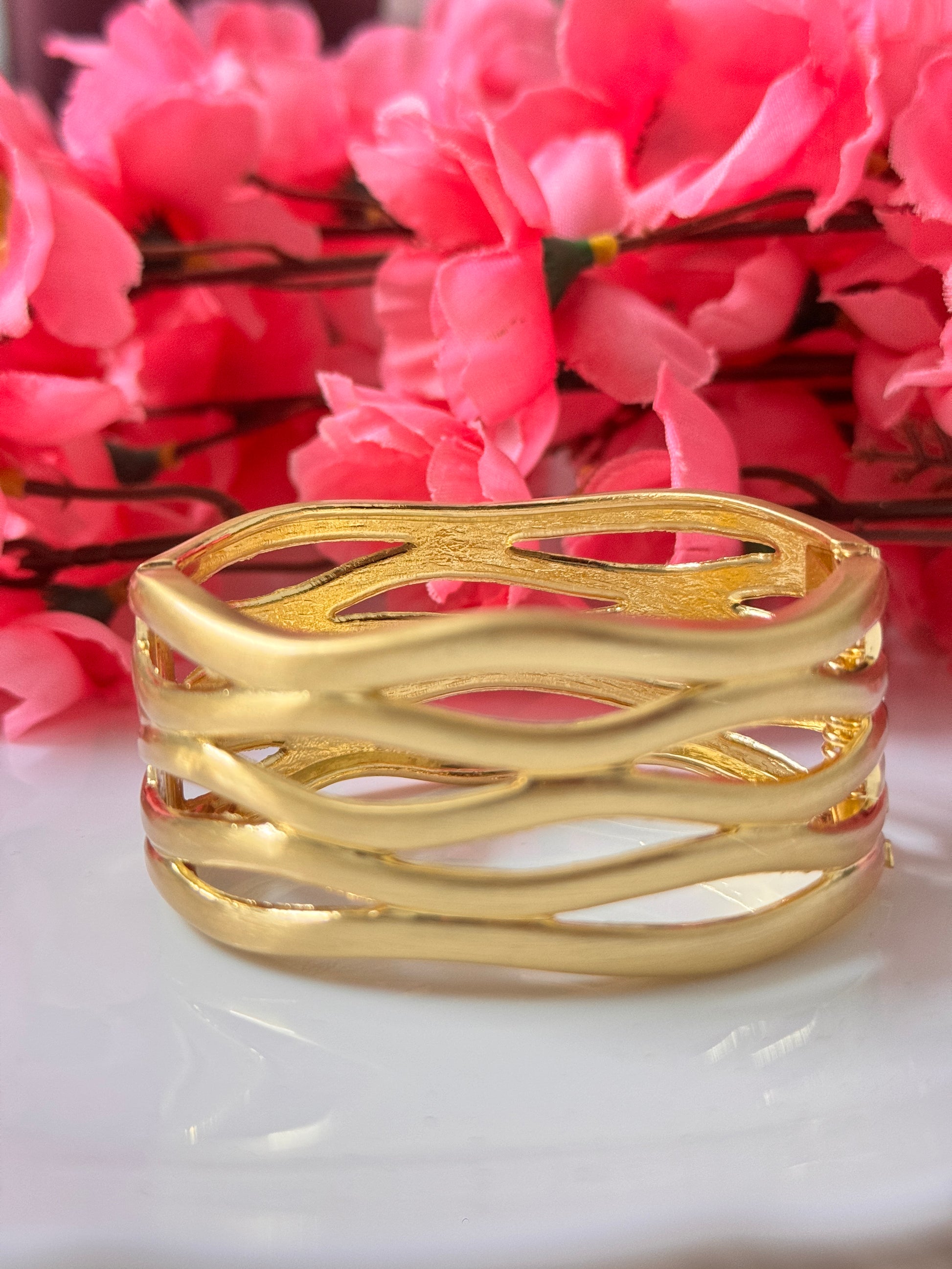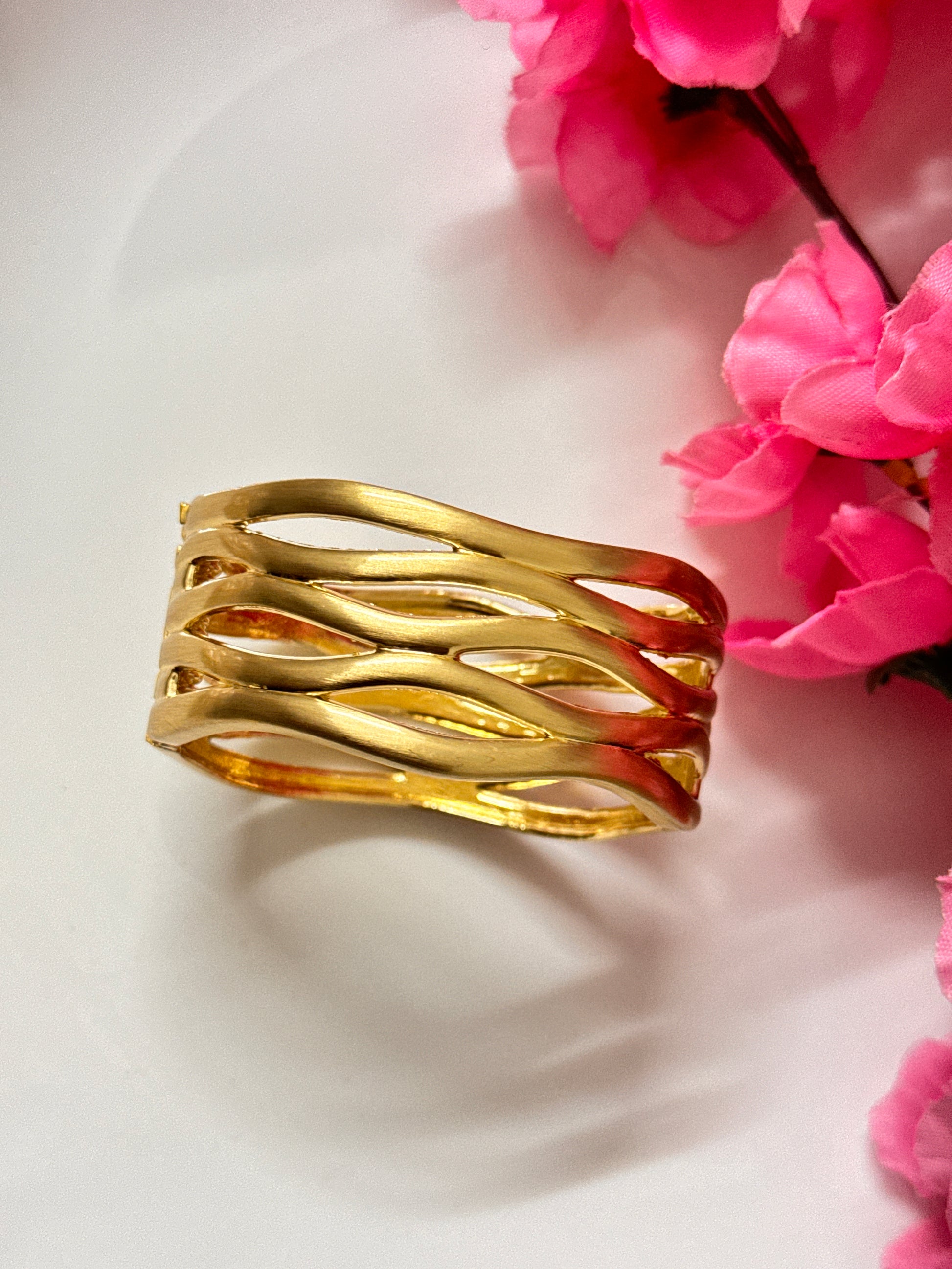 Chunky hollow cutout cuff with frosted metallic shine