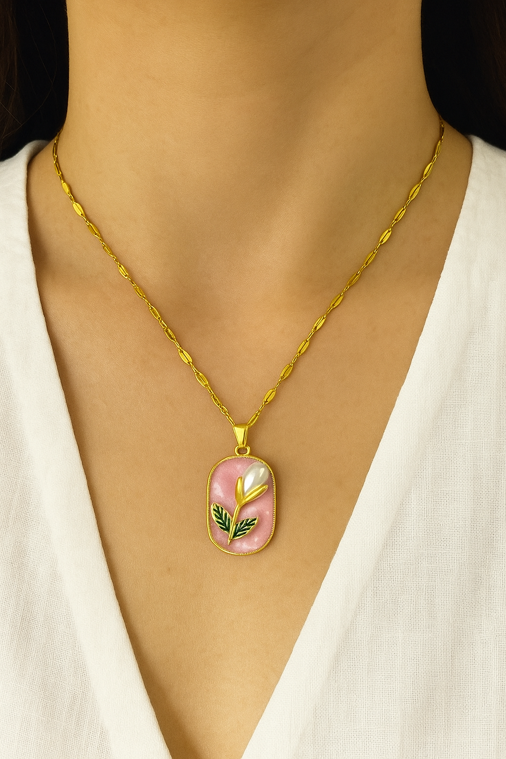 Elevate your style with our gold tulip-shaped necklace, featuring anti-tarnish durability in a dainty design. Ideal for gifting or daily wear. Get it now at ₹399!